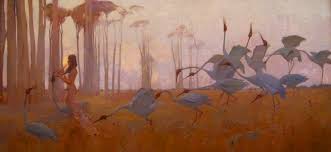 It became clear that their focus was to showcase the natural landscape through 2 familiar genres; the original (mainly European) landscape painters who captured the idiosyncratic colours and unique southern scenes, albeit often illustrated with a token aboriginal and kangaroo; and the early 1900's impressionists who captured many English traditions down under. I was so impressed to see my absolute favourite picture from Queensland Art Gallery (Sydney Long's Spirit of the Plains), together with quite a few of the cigar box paintings by Tom Roberts, Charles Conder and Arthur Streeton.